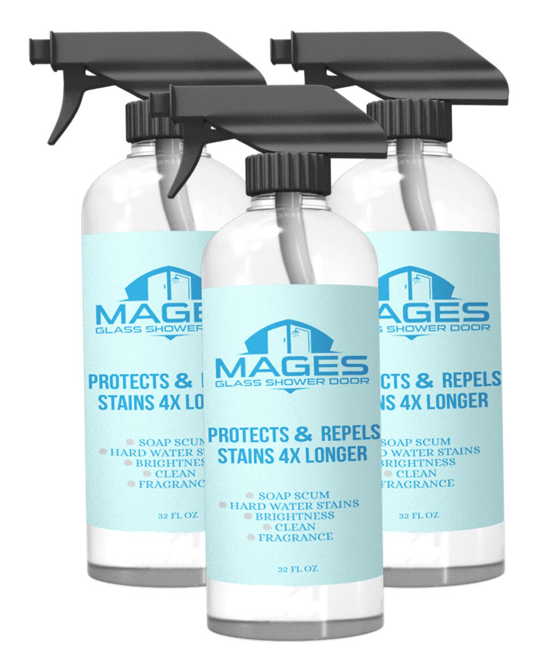 Mages shower glass door cleaner is made with ingredients that help to clean bathrooms surface like ceramics title and porcelain by harnessing the power of vinegar.